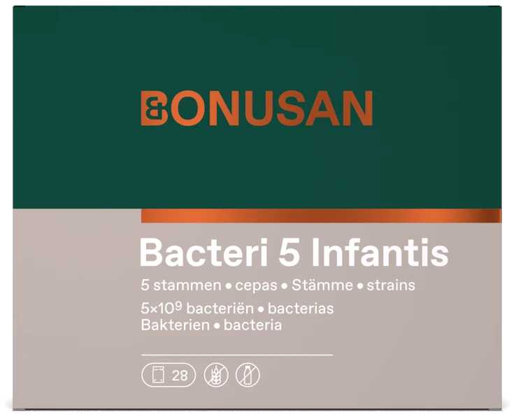 Bonusan Bacteri 5 Infantis biedt een complete samenstelling speciaal voor baby’s en jonge kinderen.