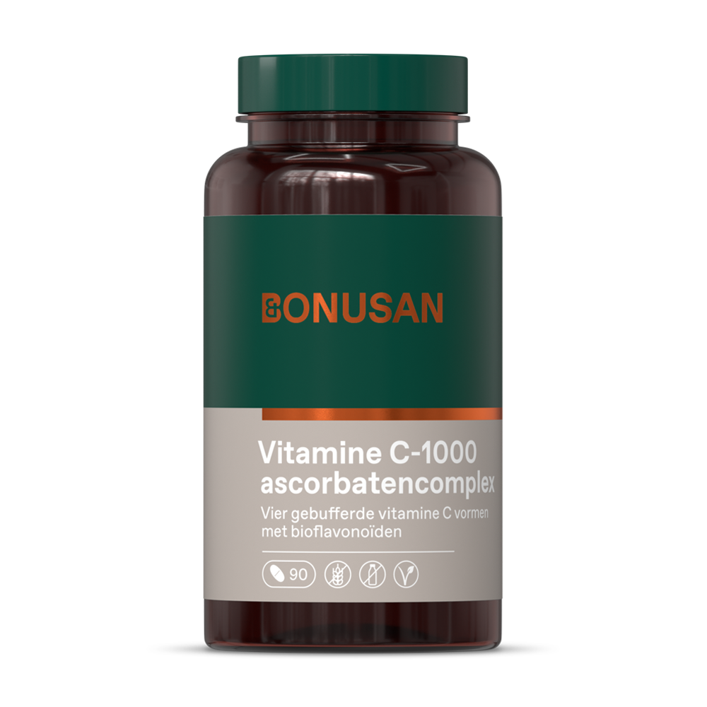 Bonusan Vitamin C-1000 Ascorbat-Komplex enthält 1000 mg entsäuertes Vitamin C pro Tablette. Dieses sogenannte gepufferte Vitamin C ist schonender für Zähne und Magenwand. In einem Ascorbatkomplex ist das Vitamin C im Produkt an Mineralien gebunden. Vitamin C unterstützt das Immunsystem und hilft, gesunde Körperzellen zu schützen Mit Bioflavonoiden zur besseren Erkennung durch unseren Körper Enthält die unterstützenden Mineralien Magnesium und Zink