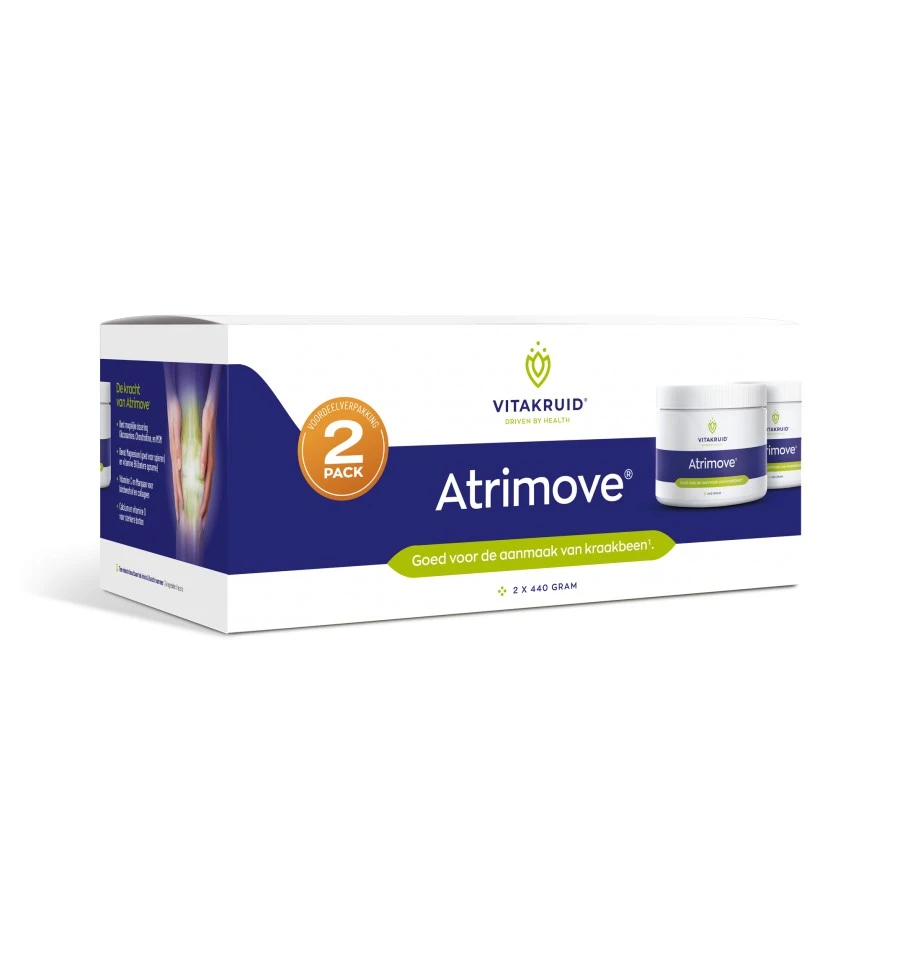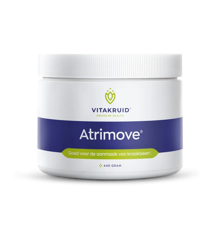 In Atrimove® zit het krachtige trio van glucosamine, chondroïtine en MSM, een specifieke samenstelling die vaak onderzocht is in de wetenschap. Sporen van glucosamine zijn aanwezig in de schalen van zeedieren zoals kreeft, krab en garnalen. In bottenbouillon zitten kleine hoeveelheden chondroïtine, terwijl MSM vooral te vinden is in mosselen. Eén maatschep Atrimove® staat gelijk aan maar liefst 1750 mg elementair glucosamine, 1500 mg chondroïtine en 3000 mg MSM.