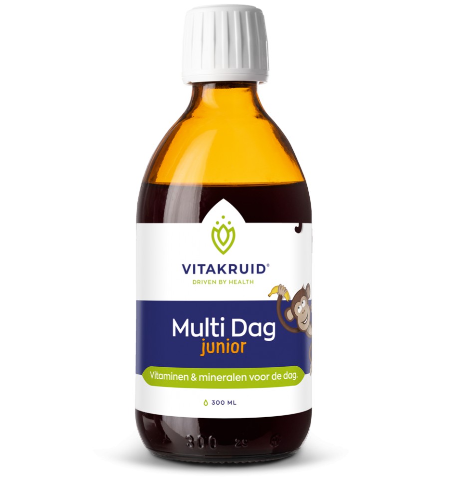 Overdag willen we dat ons kind goed kan leren, de mooiste tekeningen maakt en uitblinkt op het klimrek. Suppletie met de juiste voedingsstoffen op de juiste momenten kan de telg ondersteunen in zijn prestaties. Zo activeert de hoge dosering vitamine B12 in de Multi Dag Junior de natuurlijke energie in het lichaam en is de vitamine C goed voor het concentratievermogen.* Een innovatieve formule speciaal gericht op de dag!