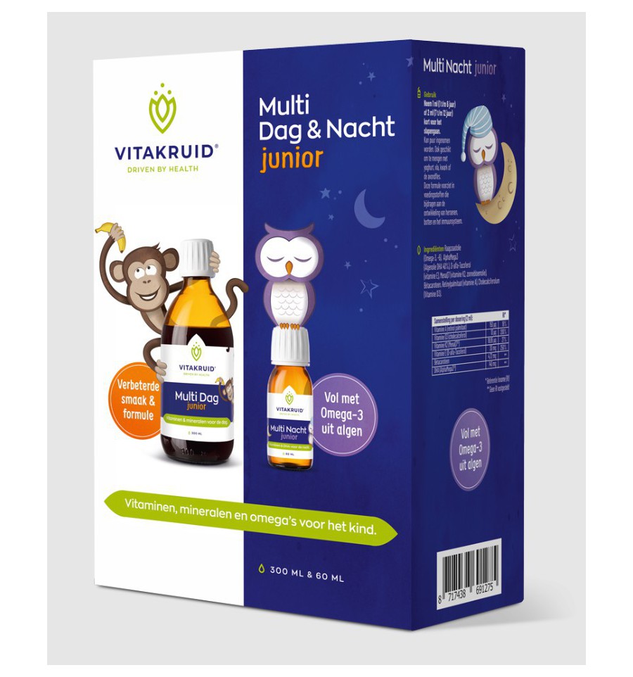 Vitakruid Junior multivitaminen dag- en nachtformule.