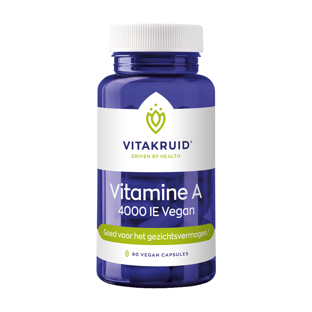 Vitamine A is een in vetoplosbare vitamine die je voornamelijk vindt in dierlijke producten zoals (orgaan)vlees, vis en zuivelproducten. Vitamine A noemt men ook wel retinol, wat een afgeleide is van retina (netvlies). We koppelen deze vitamine daarom logischerwijs aan ons zicht en dat is niet gek, vitamine A ondersteunt namelijk de conditie van het oog.*
